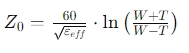 特性阻抗(Z0)由傳輸線(xiàn)的物理結(jié)構(gòu)(如寬度、厚度、介電常數(shù)等)決定,其計(jì)算公式根據(jù)不同類(lèi)型的傳輸線(xiàn)而異。例如,微帶線(xiàn)的特性阻抗計(jì)算公式為: